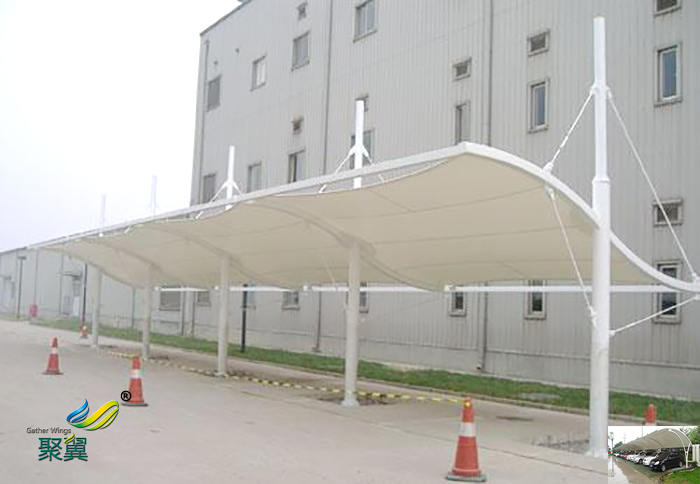汽車棚使用壽命長且無須保養(yǎng)(骨架30年以上,遮陽膜布10年以上),負重和抗風能力(積雪負重20厘米,可抗11級強風),設計簡潔美觀,非常有現(xiàn)代感各種規(guī)格膜布代加工,近的地方可以提供安裝! 膜結(jié)構(gòu)車棚特點:車棚材料選用了進口結(jié)構(gòu)建筑材料。車棚骨架,表面處理采用進口船用底漆,炳烯酸聚氨酯面漆。