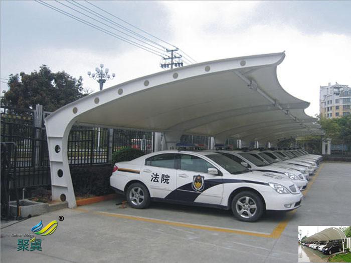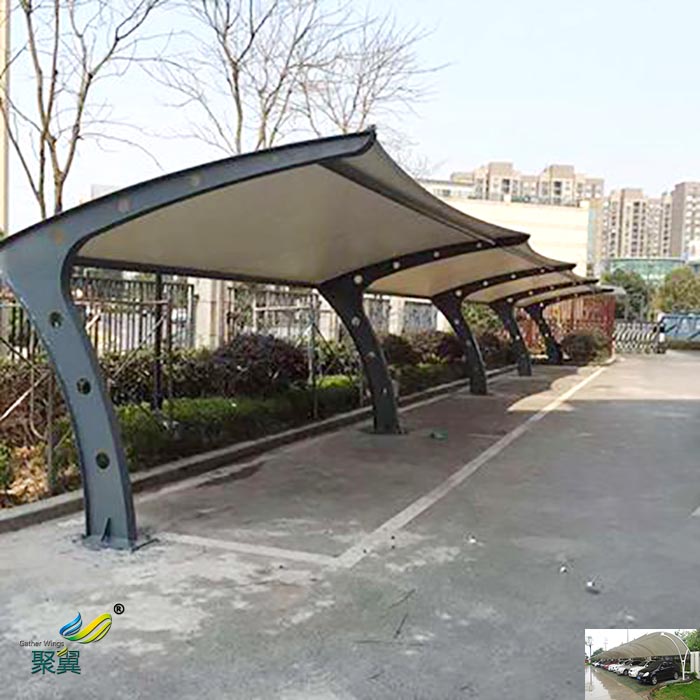 一、膜結構車棚膜結構車棚的篷布材質是膜結構,并且產品大特點是強度高、耐久性好、防火難燃、自潔性好,不受紫外線影響,使用壽命長,具有高透光率,透光率也好,熱吸收量很少。對此膜結構的特點是什么?