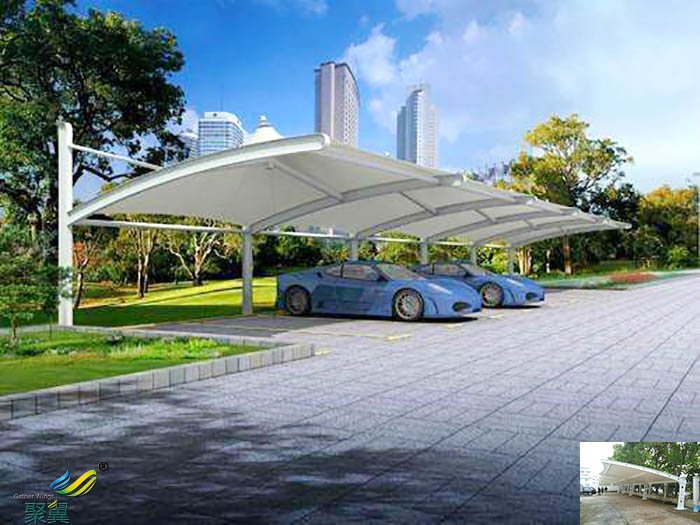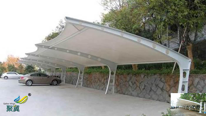 3、膜結構停車棚要確保膜結構之間的連接是安全的、合理的,看起來美觀。連接件要滿足的強度、剛度和耐久性,不會發生影響受力功用的變形,連接處的膜材料不會比其他部位的結構先損壞。膜結構停車棚的連接件要牢靠,并且可以削減連接處的應力匯集。