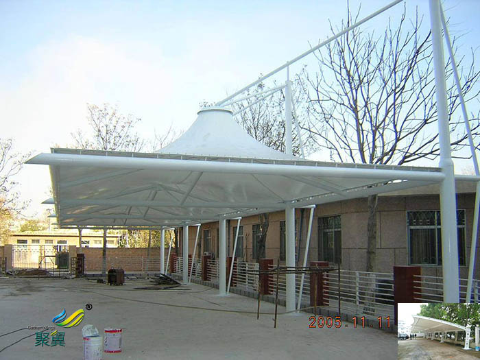 2、膜結構停車棚思考節點方案偏疼對拉鎖、膜材料發生的影響,施加預張力的辦法、方案不可以有過失。膜結構車棚膜單元設備和施加張力進程的質量查驗記載。