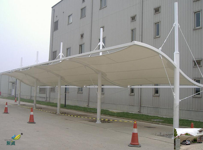 2、膜結構停車棚的耐候性,表面有防紫外線的共擠層,可防止太陽紫外線引起的樹脂疲勞變黃.表面共擠層具有化學吸收紫外線并轉化為可見光.對植物光合作用有良好的穩定效果(極適合保護各類車、貴重藝術品及展品,使其不受紫外線破壞).