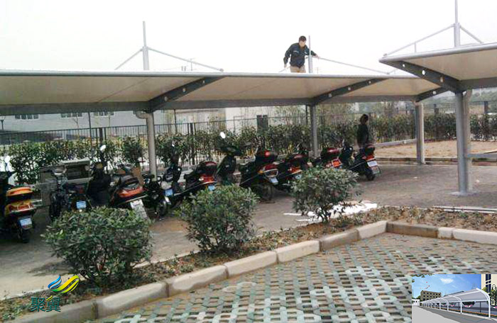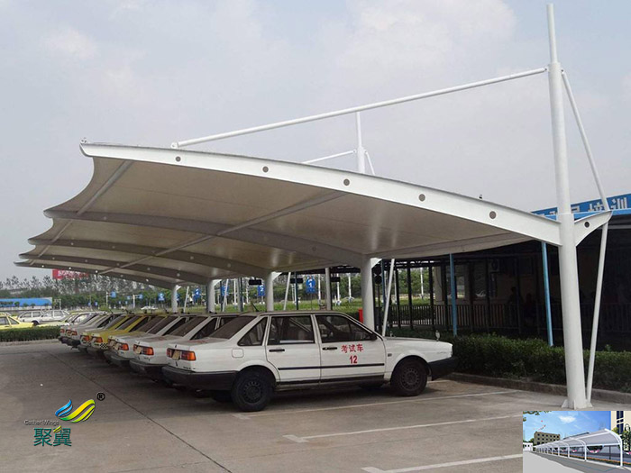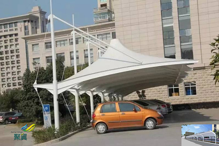膜結構車棚具有十分良好的承載性能,能以很小的厚度承受相當大的荷載。車棚的強度和剛度主要是利用了其幾何形狀的合理性,以材料直接受壓來代替彎曲內力,從而充分發揮材料的潛力。因此車棚是一種強度高、剛度大、材料省的即經濟又合理的結構形式。膜結構車棚已經融入到了我們的生活中,外觀靚麗,實用性較高深得用戶者們的喜愛,多種優點豐富便捷了我們的生活。