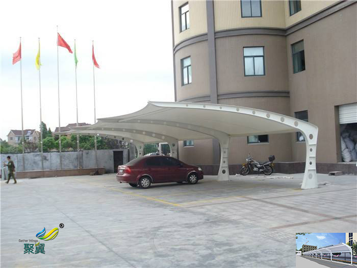 車棚,遍布在咱們生活的各個角落,在很多公眾場合、單位、小區都會安裝很多車棚以供人們停放車輛使用,車棚有很多種,而膜結構車棚以其輕巧別致的造型及優越的性能優點而越來越受人們青睞。下面來談談膜結構車棚施工方案: