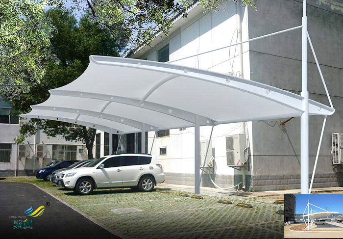 3、例行維護,膜結構停車棚是能承受一定的外荷載作用的一種空間結構形式因此主要是對膜結構處于不正常狀態時候進行調節,不正常狀態,應采取預張力補強或其他措施,連接件如有松動會重新擰緊或予以加固等等方法。