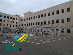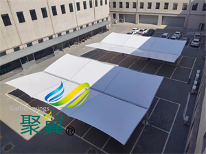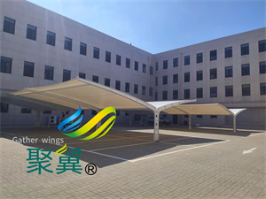 天津體育學校項目工程為拉桿式膜結構車棚和七字型雙開膜結構車棚,鋼結構骨架使用環(huán)氧富鋅底漆防腐時間更長效果更好,膜布采用PVDF1100g膜材,使用壽命更長。炎炎夏日膜結構車棚為您的愛車提供清涼的停車場所。