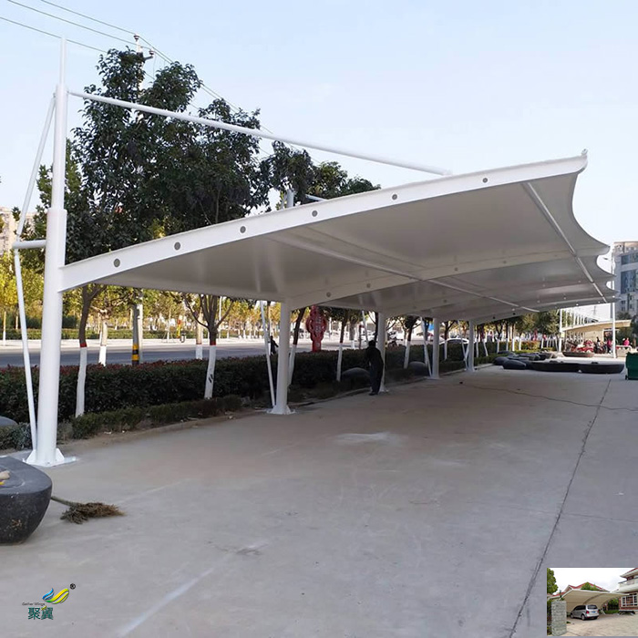 然后是膜結(jié)構(gòu)停車棚的有效防護優(yōu)點,鑒于膜結(jié)構(gòu)停車棚本身材料的優(yōu)點,可以有效的保護汽車或是自行車電動車免于風(fēng)雨和日曬的危害,而且膜結(jié)構(gòu)停車棚可以遮陽,但不會完全擋住陽光,從而會使停車棚沒有那么潮濕,對于車子的保養(yǎng)也是非常重要的。膜結(jié)構(gòu)停車棚的造型百變,可以根據(jù)環(huán)境的需要,設(shè)計成更好保護愛車形狀的車棚,可謂是非常的方便。