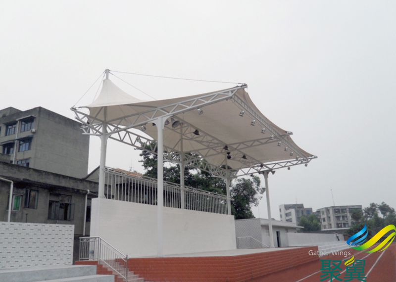 學校體育看臺雨棚專業制作廠家:聚翼遮陽膜結構體育看臺雨棚、膜結構高爾夫發球臺雨棚、膜結構雨棚制作施工建設單位,24小時客服電話:400-021-3310