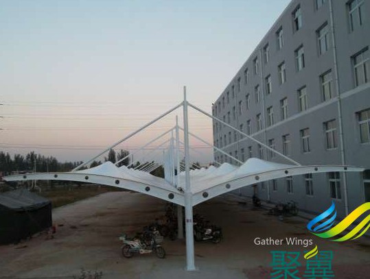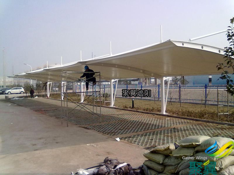 詳細>>車棚的篷布材質是膜結構,而膜材的最大特點是強度高、耐久性好、防火難燃、自潔性好,不受紫外線...