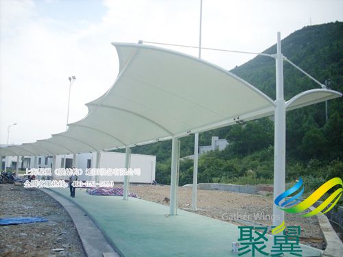 名稱:膜結構車棚 型號:JY-20系列 尺寸:立柱間距 X 3m-6.5m 懸挑長度 Y 2.5m-8.0m 外檐高度 H 2.0m-3.2m 可根據需要定制尺寸!總長度不限.詳細請聯系我們:400-021-3310