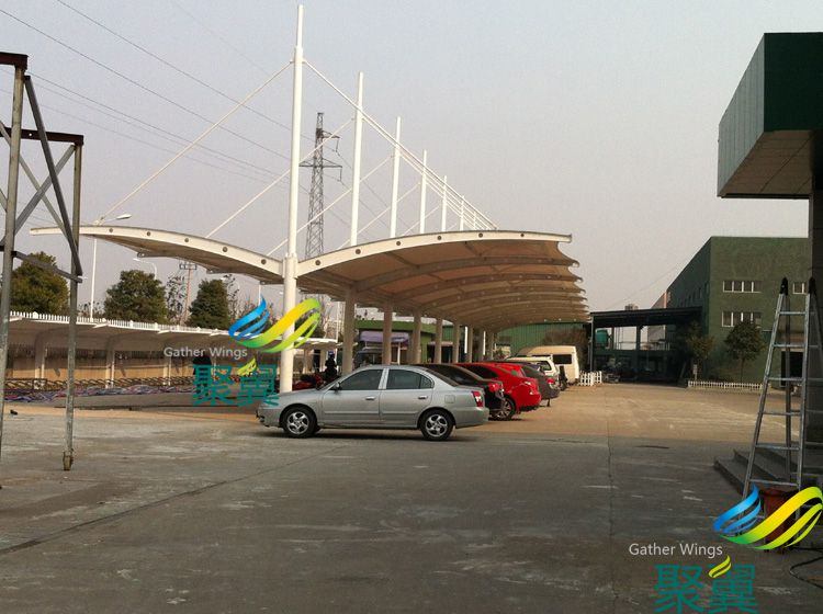 露天停車場(汽車、自行車等)的日曬防護及抵抗雨雪天氣的室外環境給車輛造成的損傷。 汽車使用效果:在夏季汽車露天停放受到紫外線強烈照射,車內溫度常常升至40℃以上!若使用聚翼JY60Z膜結構車棚下停放,車內溫度平均底于室外氣溫2-5℃,節省了汽車空調能耗提升汽車整體的使用壽命! 隨著都市現代化步伐的加快,汽車成為任何一個都市不可缺少的交通工具。中國由于汽車 工業高速發展,城市的汽車擁有量成倍上升,但城市建設規劃沒能盡快適應這一發展的要求,常常是車無停放之地。所以在建設群規劃時就應充分考慮停車場的問題,把停車場的建設和規劃當成現代城市建設規劃的重要組成部分,變得越來越重要。同樣,膜結構在停車場建設中也以其優美的造型和實在的功能擔當重要角色。 自行車使用效果:騎單車環保又有利于健康,但往往單車停放較散亂不易管理!常見于學校、醫院、工業區、加工企業單位等。單車長期停放于室外,易生銹、老化!雨雪天氣也給車主帶來了及大的不便(例如:穿雨披、雨鞋、撐起雨傘時沒有地方躲雨)。推薦使用聚翼JY-60Z膜結構自行車棚,實用而且能提升企業整體形像! 一份關心一愛護,“友”車 “友”愛 “友”聚翼!