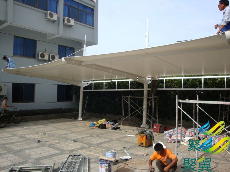 車(chē)棚其特點(diǎn):耐腐蝕、防老化、堅(jiān)固耐用、安全性好、防噪音、不滲水、抗風(fēng),抗積雪,抗紫外線(xiàn),易保養(yǎng)等諸多特點(diǎn)。車(chē)棚最大的優(yōu)點(diǎn)就是時(shí)尚靚麗,停車(chē)空間大,一次建造使用多年(膜布可更換)。 車(chē)棚的尺寸一般伸展長(zhǎng)度為:2.7-4米(汽車(chē)棚伸展長(zhǎng)度在6-8米)立柱間距為5-6米,可雙排或單排(就是雙開(kāi)遮陽(yáng)或單邊立柱子的固定遮陽(yáng)棚)。款式可根據(jù)實(shí)際的現(xiàn)場(chǎng)情況定制。
