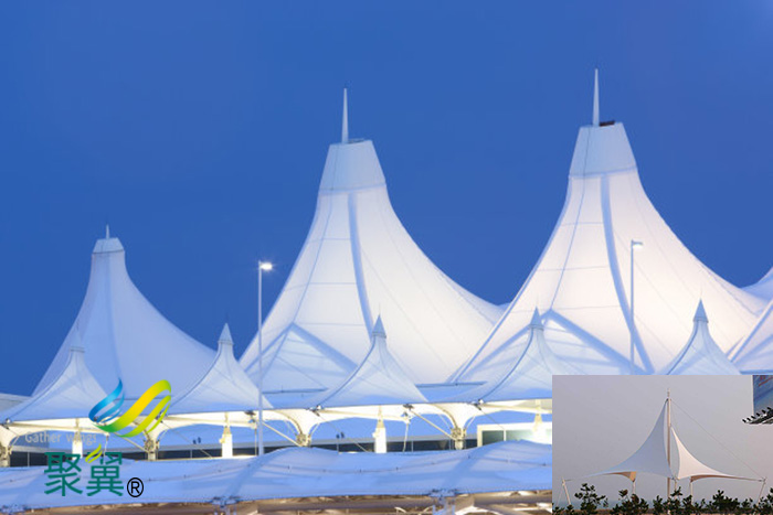 而且,膜建筑物屋頂的重量僅為常規鋼屋頂的重量的1/30,這降低了墻的成本。同時,膜建筑的獨特形狀和夜景效果具有明顯的“建筑身份”和商業效應,其價格效益比更高。該膜具有較高的反射率和較低的光吸收率,并且熱導率低,這在很大程度上阻止了太陽能進入室內。薄膜的半透明性確保適當的自然漫射光可以照亮整個房間。