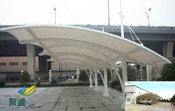 2、膜結構車棚適用范圍:社區學校、商業廣場、體育館、工廠、汽車4S店、旅游度假餐桌、政府機構等。