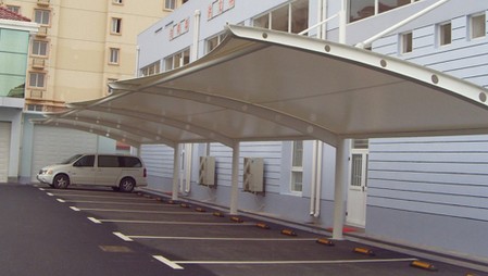 浦東廠區JY-60膜結構車棚安裝竣工后效果圖展示