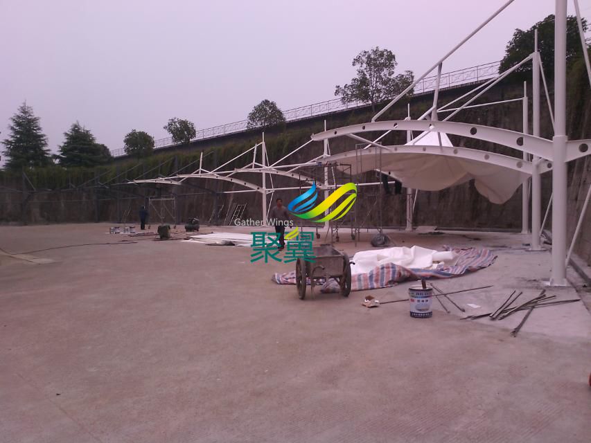 安裝細(xì)節(jié):主體為鋼構(gòu)焊接,采用主框架與部分結(jié)構(gòu)同步安裝施工,油漆現(xiàn)場作業(yè)完成。膜布廠內(nèi)加工成品現(xiàn)場安裝細(xì)節(jié)處理。需膜結(jié)構(gòu)車棚可以咨詢我司,詳情電話:400-021-3310.
