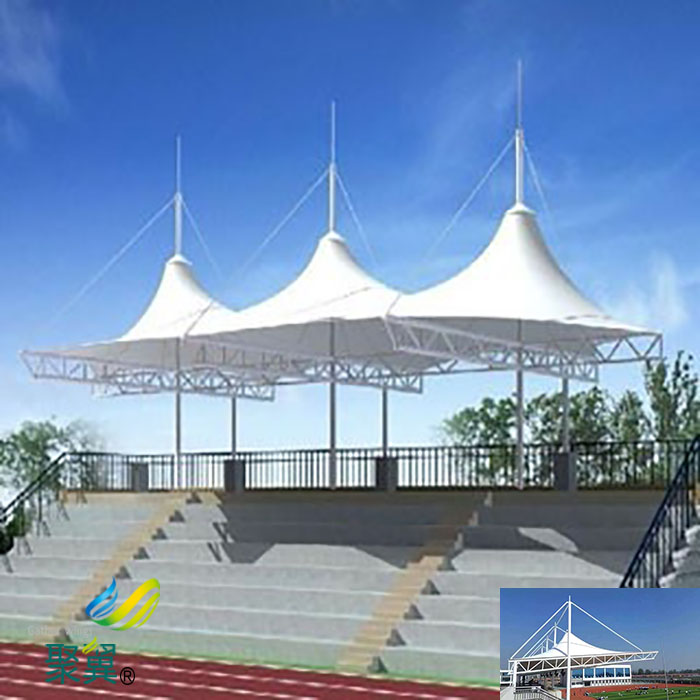 隨著膜結構的運用越來越廣泛,在膜結構建筑中又出現了一種膜結構體育看臺,膜結構體育看臺占地面積小,設計獨特,造型優美,透光性好,受到了越來越多人對的青睞。膜結構體育場看臺的安裝不能在風力超過四級的時候進行。同時在安裝過程中為了避免顫動現象的發生,要時刻注意風向和風速。