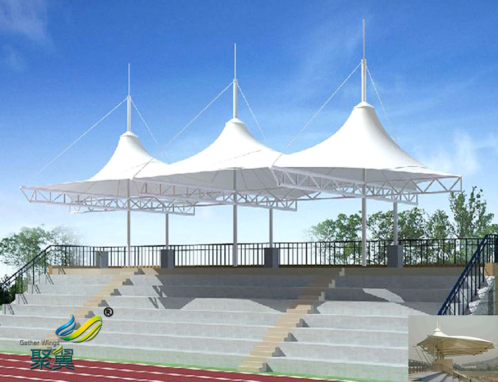 2、膜結(jié)構(gòu)體育看臺具有獨特的光學性能:白天入射光線成為自然溫射光,防止眩目,無陰影,光線均勻3、膜結(jié)構(gòu)看臺的使用壽命較長:膜結(jié)構(gòu)體育看臺使用溫度范圍廣,能夠在-70℃~230℃的溫度范圍內(nèi)使用。同時膜結(jié)構(gòu)體育看臺采用PTFE膜材料的膜結(jié)構(gòu)建筑具有耐熱性、耐氣候性、耐藥物性、高強度、防火等特性,而且不易老化,經(jīng)過長期使用仍能保持其初建時的強度。所以通常膜結(jié)構(gòu)體育看臺的使用壽命在25年以上。