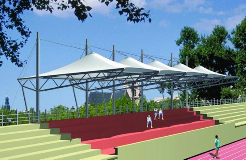 3、膜結構體育看臺棚優質膜結構制成,用優質的材料是對學生安全的保障。造型美觀,對學校環境的優化,經濟適用,成本的低廉,壽命長久維護的時間降低。