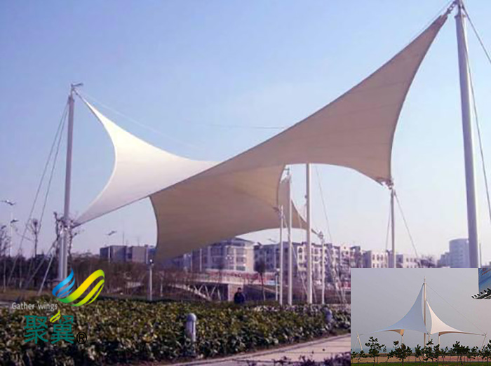 提供豐富多彩的用途,并與園林景觀溶為一體。創(chuàng)造出讓人們盡情享受的快樂空間。充分展示了結(jié)構(gòu)構(gòu)件清晰受力的藝術(shù)之美,它巧妙的整合周圍的環(huán)境,給人們一種高貴典雅、浪漫溫馨之感。另外由于膜材料本身特有的顯色性,在夜間彩燈的映射下能形成絢麗繽紛的景觀。不僅為人們提供遮陽避雨的空間。同時(shí),更由于這種生動活潑的造型能給人們帶來時(shí)尚、輕松的休閑感受,所以廣受歡迎。
