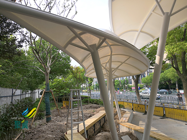 景觀膜結構是一種建筑與結構結合的結構體系,是采用高強度柔性薄膜材料與輔助結構通過一定方式使其內部產生一定的預張應力,并形成應力控制下的某種空間形狀,景觀膜結構作為覆蓋結構或建筑物主體,并具有足夠剛度以抵抗外部荷載作用的一種窄間結構類型。 景觀膜結構結合整體環境,建造出標志性的形象工程,并且實用性強、應用領域廣泛。既可應用了大型公共設施,如體育場館的屋頂系統、機場大廳、展覽中心、購物中心、停車場、站臺設施等。景觀膜結構又可應用于休閑設施、工業設施、入口廊道以及標志性或景觀性的建筑、小品等。