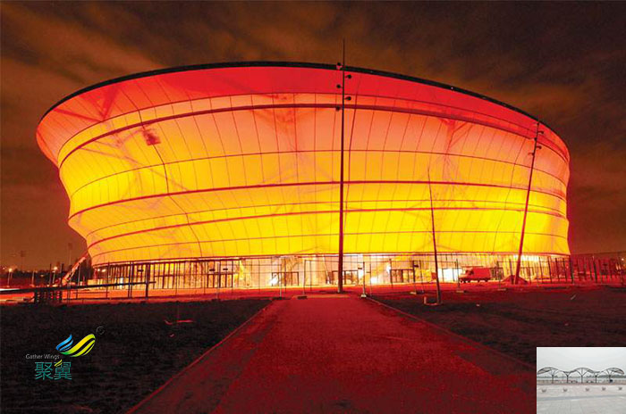 對于舞臺膜結構工程來說,在施工的時候并不是一件難事,按照尺寸對膜進行裁切后,就是焊接。焊接好后就是安裝。當一個舞臺搭建好后,肯定不像車棚、出入口、體育場那樣使用的比較長久,根據不同的舞臺風格和節目的內容還需要對舞臺進行改造和變換,這時候就需要我們進行附件更換了。只需要更換部分附件,就可以讓舞臺有煥然一些的感覺。