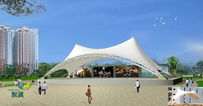四、舞臺膜結構具有膜結構建筑的所有優點:外觀雅致飄逸,空間開闊靈透、結構輕致、透光阻燃、自潔性好、安裝快、節能降耗、造價適中、維修便捷。