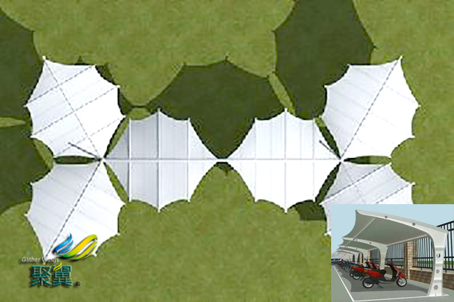 膜結(jié)構(gòu)車棚自行車棚|支撐構(gòu)件的位置和高低排列