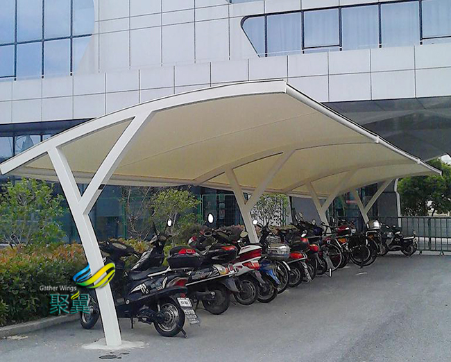 膜結構車棚的安裝應在風力不大于四級時進行。在安裝過程中,應充分注意風速和風向,避免振動現象。同時,應根據降雨量大小決定工程的暫停和延續。