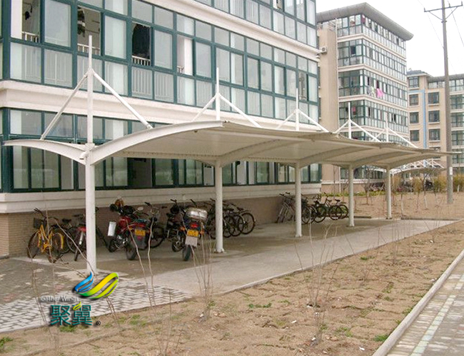 膜結構車棚可以給我們帶來很多方便,而且在日常生活中也逐漸得到廣泛應用。膜結構車棚的安裝包括膜體的展開、連接與固定、拉伸與成形三部分。 安裝時,應在膜結構車棚膜表面安裝爬行安全網,操作人員需要佩戴安全帶。在安裝過程中,操作人員在膜面上行走時應穿軟底鞋,不應佩掛鑰匙等硬物。 在膜結構車棚的安裝過程中不應該儲存雨水。同時,應根據降雨量大小決定工程的暫停和延續。