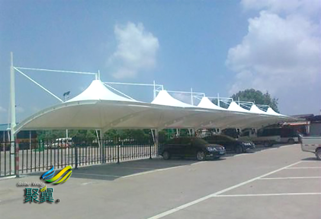 膜結(jié)構(gòu)車棚的裝置快捷,迅速,外型好,工期短,膜結(jié)構(gòu)車棚的變形才能和擴(kuò)大性致使抗 震功能比傳統(tǒng)修建強(qiáng)一萬倍之多。