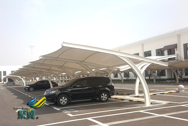 在作為各種膜結構車棚跨度結構主要受力構件的同時,還可以選擇透光甚至透明的膜結構車棚膜材來控制進入內部空間的光線強弱,從而滿足各種設計要求。