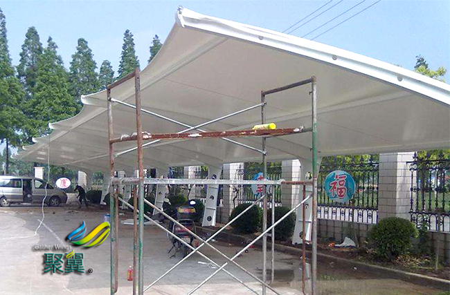 膜結構車棚跨度空間大指出其因為自重輕,膜結構車棚修建能夠不需要內部支撐面大跨度掩蓋空間,這使大家能夠列靈活計和運用修建空間,描繪出愈加有構思的修建。