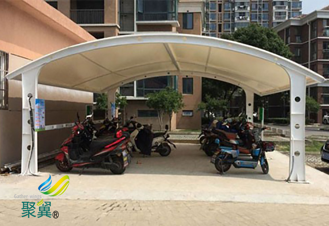 自從中國發起綠色出行以后,各大城市的自行車職業疾速開展,膜結構車棚自行車棚也是一種綠色交通設施,是市民們的自行車停放場所。