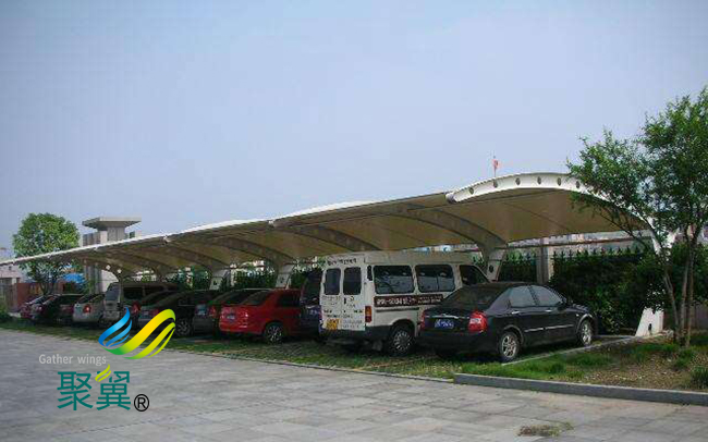膜結構車棚拉伸時應注意間歇張力的順序和值。控制張力速度,根據材料特性確定過張力值。