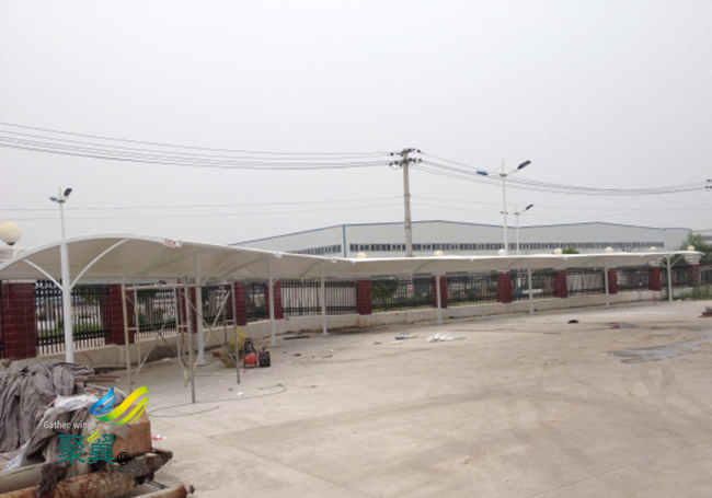 膜結構車棚美觀大方,空間跨度大。較好地體現了膜結構空間跨度大、施工周期短的優點。由于越來越多的膜結構車棚取代傳統的混凝土結構,膜結構車棚的特性越來越受到人們的重視。