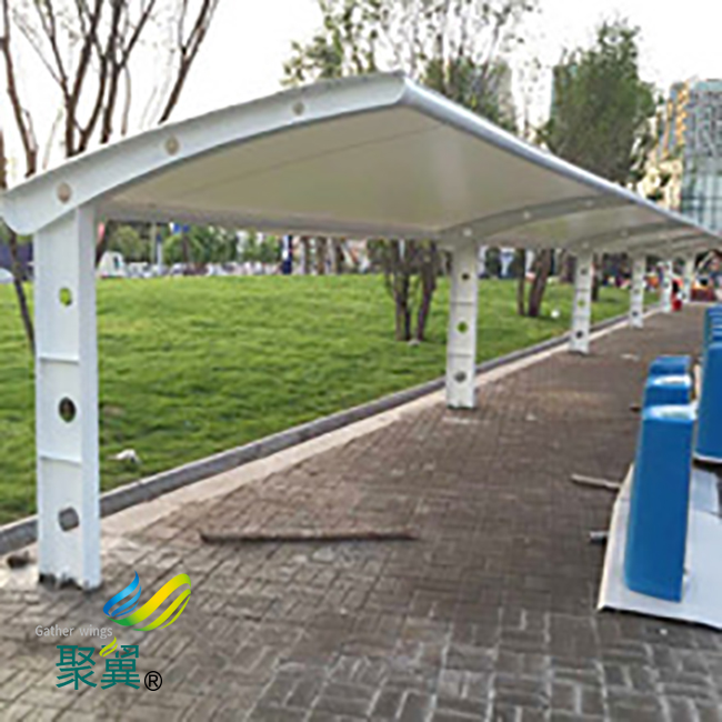 膜結構車棚是通過變形是來適應外荷載,在此過程中荷載作用方向上的膜結構車棚膜面曲率半徑會減小,直至能更有效抵抗該荷載。