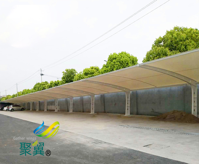 膜結構車棚膜材的張力使其能承擔一定的外荷,最有趣的是,即使出現不可負重的現象,由于膜結構車棚膜材質本身比較輕巧,也不會帶來太多的傷害。膜結構車棚既保護車不被紫外線侵害,同時還透露進一定的陽光使得膜結構車棚內不會太過于潮濕,保持一個干燥的環(huán)境。