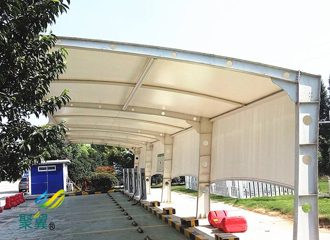 膜結構車棚自行車棚這種戶外的設施要有一定的抗風性,像這種膜結構車棚膜材也十分能適應這種環(huán)境,通過試驗發(fā)現(xiàn),像這種膜結構車棚膜材的抗風能力*高達到十一級。