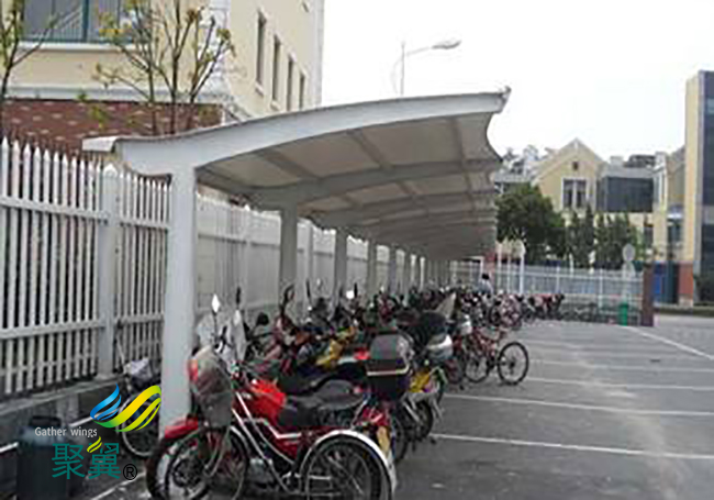 膜結(jié)構(gòu)車棚自行車棚這種戶外的設(shè)施要有一定的抗風性,像這種膜結(jié)構(gòu)車棚膜材也十分能適應(yīng)這種環(huán)境,通過試驗發(fā)現(xiàn),像這種膜結(jié)構(gòu)車棚膜材的抗風能力最高達到十一級。