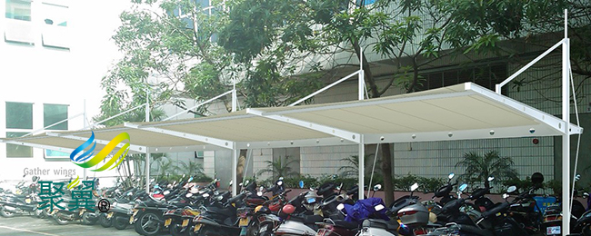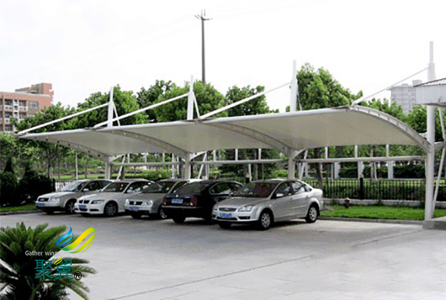 膜結(jié)構(gòu)車棚外形可豐富多樣,而且比較美觀可以成為一個城市的景觀,它使用比較廣泛。