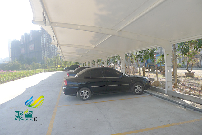 膜結構車棚的篷布材質是膜結構,而膜材的*大特點是強度高、耐久性好、防火難燃、自潔性好,不受紫外線影響,使用壽命長,一般15-30年。