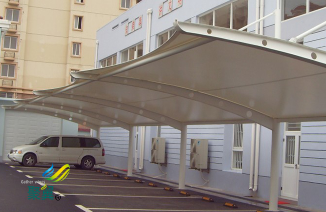 膜結構車棚具有自潔性,膜結構車棚的自潔性主要是膜材料表面加涂了防護層,膜結構車棚防護層主要是聚氟乙烯、丙烯酸等構成可耐高溫,不會發(fā)粘,從而在落到膜結構車棚膜材料的灰塵可依靠雨水或者自然風來達到自潔的特性。
