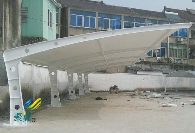 膜結構車棚本身重量很輕,所以它會在施工時節省了大量的人力物力。膜結構車棚建筑按照“零資源,零能耗,零污染,零工地,零間隔”這六個建筑設計理念,成為綠色環保建筑的代表。