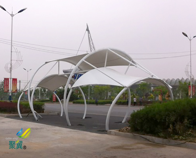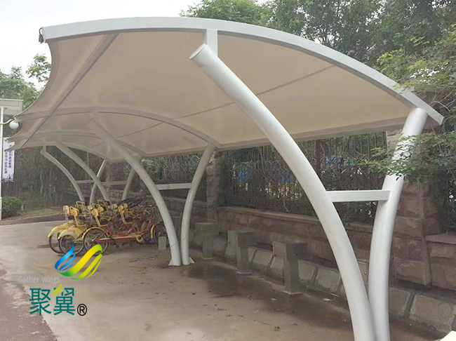 藝術(shù)性。膜結(jié)構(gòu)是一種新型的建筑結(jié)構(gòu)形式,膜結(jié)構(gòu)車棚不同于中國傳統(tǒng)建筑。由于膜結(jié)構(gòu)車棚占地面積小、可便于安裝拆卸等特點,設(shè)計師可以充分發(fā)揮自己的想象力,膜結(jié)構(gòu)車棚設(shè)計出造型多樣、不拘一格的停車棚。