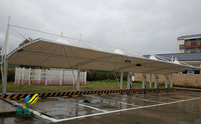 膜結構車棚相較傳統車棚更環保,膜材的使用可以減少空間用鋼量,減少二次污染,其施工現場減少沙、石料、膜結構車棚鋼結構焊接等用量,施工現場要保持環保,同時膜結構車棚進現場后只需漲拉就位,施工速度很快。