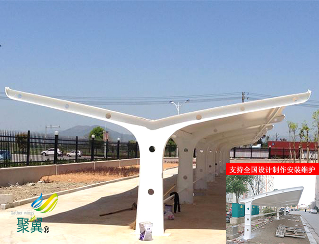 在進行 膜結構車棚膜體輔設期間肯定要做好制品珍愛,不可損壞膜結構停車棚的膜面。 膜結構車棚膜面支承結構之間不可以直接接觸,應當進行隔離。