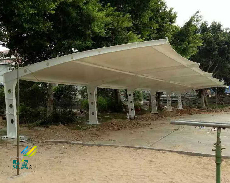 膜結構車棚具有充分利用陽光、空氣以及與天然交融的特性,符合其時建議的”環保、可繼續展開”嚴峻戰略,也為高科技生態建筑的展開供應了寬廣的空間,更遭到世界各地綠色建筑運動倡導者們的喜愛,將變成21世紀”綠色建筑體系”的寵兒,同時作為遮蓋結構,膜結構車棚膜材的張力使其能承擔一定的外荷,*有趣的是,即使出現不可負重的現象,由于膜結構車棚膜材質本身比較 輕巧,也不會帶來太多的傷害。