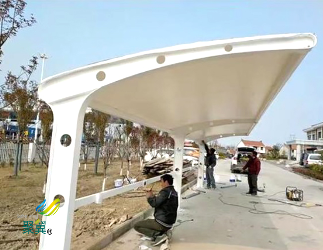 膜結構車棚施工周期較短,和傳統的停車棚相比,膜結構車棚的施工工期更加短,因為它的所用加工、制作工程都是在工廠內設計完成的,在現場只需要安裝一下即可。
