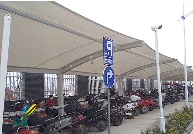 鋼構造膜結構車棚的支架構造經過鋼資料的拼接焊接而成,膜結構車棚*大的特性是結實,也能遮風擋雨,就是外型單一,膜結構車棚拆裝比擬費事,但是膜結構車棚抗震防風性能強。