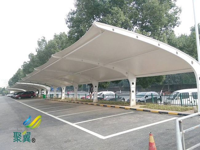 膜結構車棚具有不易燃性、高強度、耐氣侯變化性以及優(yōu)良的幾何穩(wěn)定性。膜結構車棚PVC對氧化劑、還原劑和強酸都有很強的抵抗力、材料用途極廣、膜結構車棚具有加工性能良好、制造成本低、耐腐蝕、絕緣等良好特點。